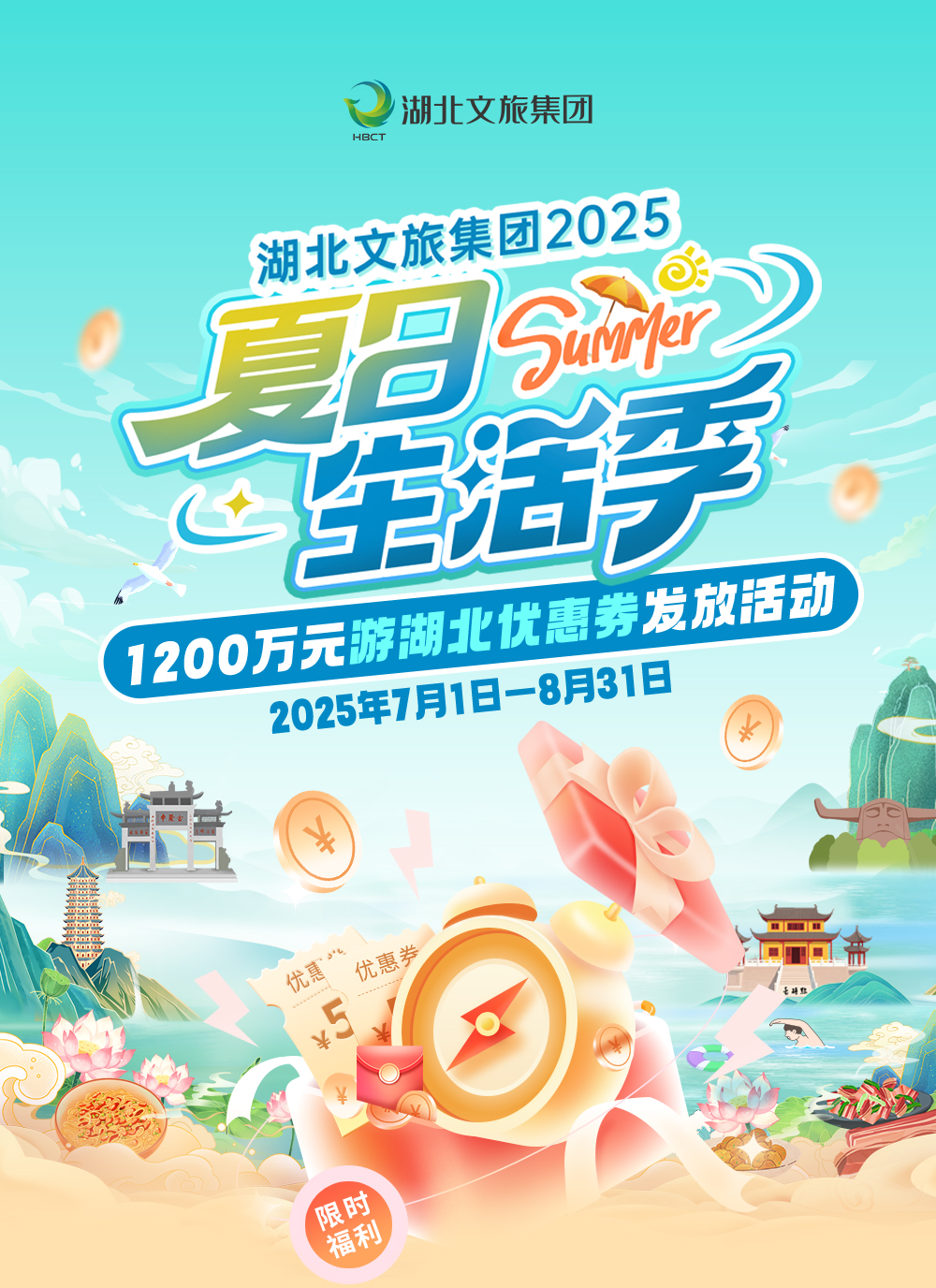 為激活暑期文旅消費(fèi)市場,數(shù)旅集團(tuán)在湖北文旅集團(tuán)“夏日生活季”主題活動(dòng)框架下,將于7月1日上午10點(diǎn)起通過“游湖北”平臺(tái),面向廣大游客發(fā)放總價(jià)值高達(dá)1200萬元的“夏日優(yōu)惠券”。本次活動(dòng)旨在讓游客暢享荊楚大地的夏日魅力,體驗(yàn)更實(shí)惠的湖北之旅。