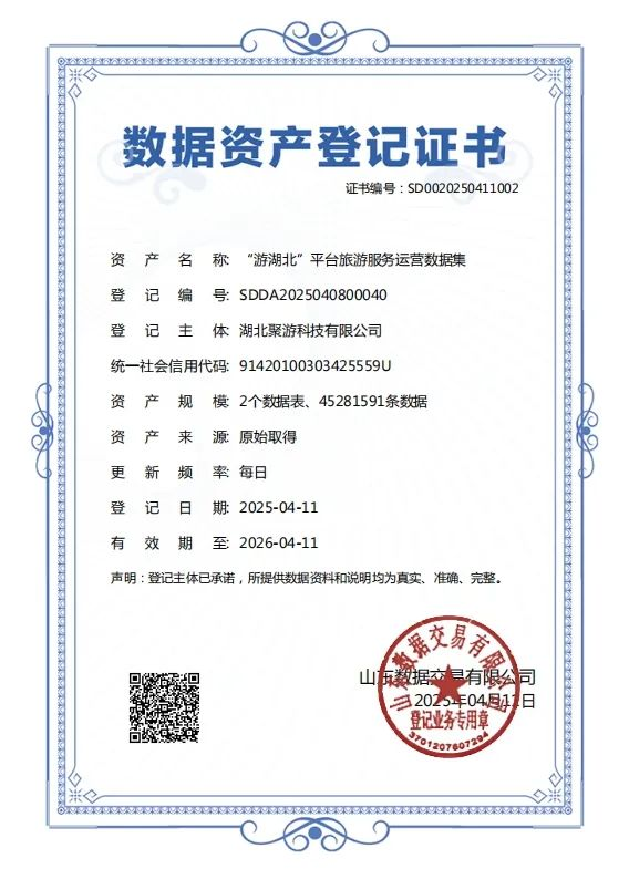 數(shù)旅集團實現(xiàn)文旅數(shù)據(jù)資源向資產(chǎn)入表實質性突破!近日,湖北數(shù)字文旅集團旗下聚游科技公司研發(fā)的“游湖北平臺旅游服務運營數(shù)據(jù)集”成功取得數(shù)據(jù)資產(chǎn)登記認證。該數(shù)據(jù)集源自聚游科技公司承建的湖北省重點文旅數(shù)字化項目“一部手機游湖北”平臺。依托平臺運營積累的海量數(shù)據(jù),涵蓋游客行為分析、景區(qū)實時流量監(jiān)測、消費偏好畫像、文旅服務評價等核心維度。通過標準化治理、脫敏處理及合規(guī)確權,實現(xiàn)了數(shù)據(jù)資源向資產(chǎn)的轉型,為數(shù)據(jù)資產(chǎn)入表奠定了堅實基礎。