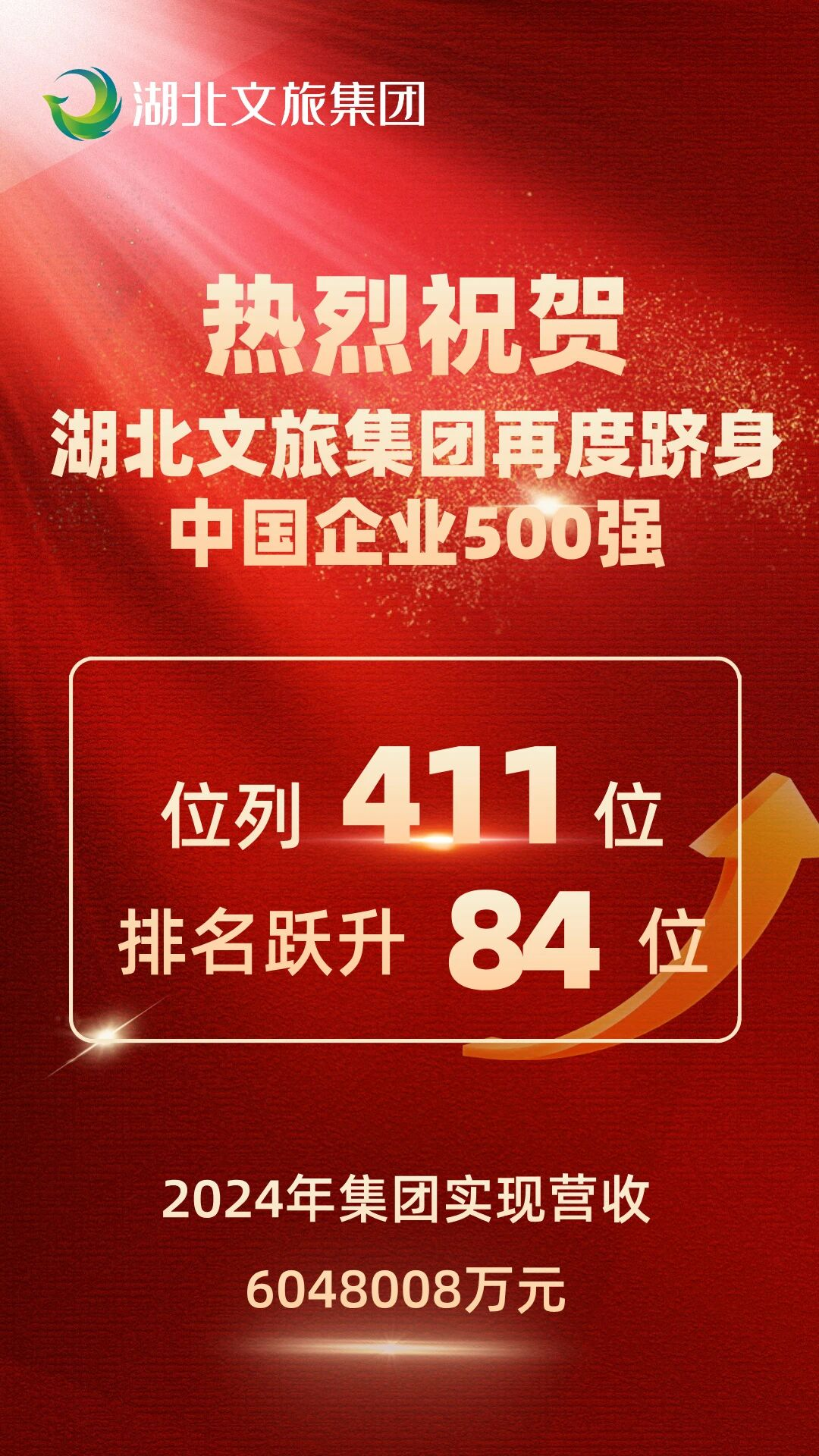 湖北文旅集團(tuán)再入圍中國企業(yè)500強(qiáng),排名躍升84個(gè)位次。9月15日,中國企業(yè)聯(lián)合會(huì)、中國企業(yè)家協(xié)會(huì)連續(xù)第24次向社會(huì)發(fā)布了“中國企業(yè)500強(qiáng)” (以下簡稱“企業(yè)500強(qiáng)”)榜單。湖北文旅集團(tuán)連續(xù)第二年入圍,排名升至411位,比去年躍升了84個(gè)位次。近年來,集團(tuán)年?duì)I收、經(jīng)營性利潤均保持20%以上高位增長,特別是2024年集團(tuán)投資、營收、接待游客量三個(gè)核心指標(biāo)增長100%以上,當(dāng)年接待游客量突破3100萬人次,總資產(chǎn)達(dá)1000億元。集團(tuán)連續(xù)七年獲評全國旅游集團(tuán)20強(qiáng),連續(xù)兩年躋身“中國企業(yè)500強(qiáng)”。